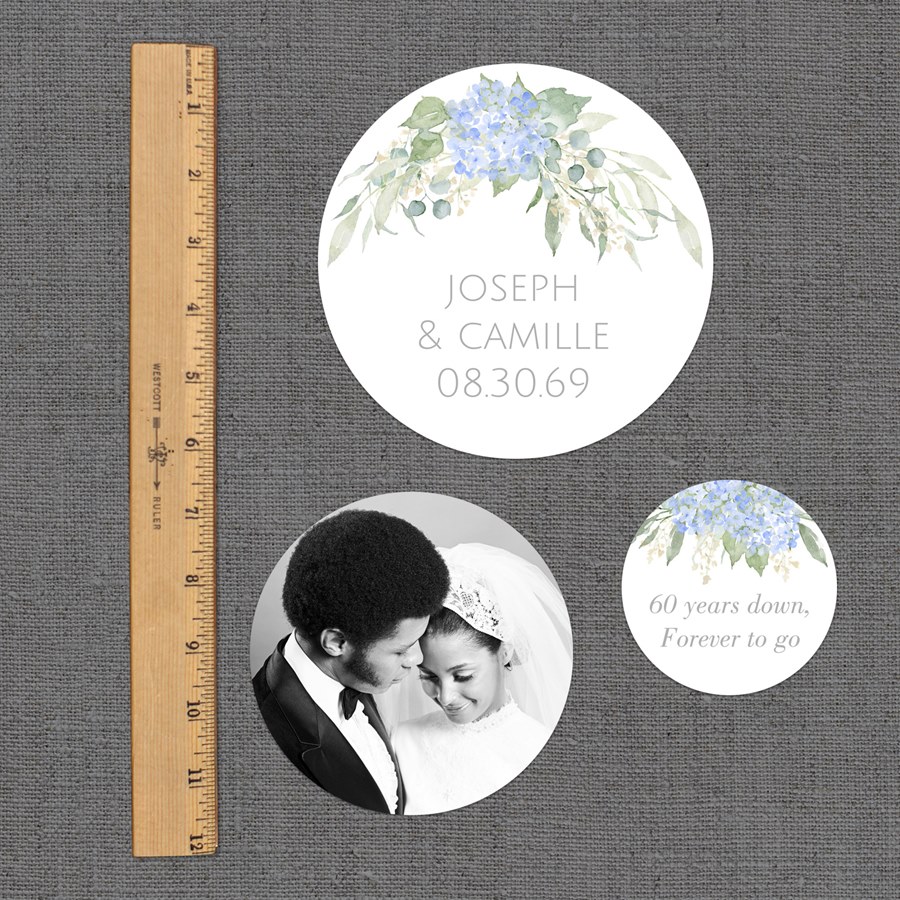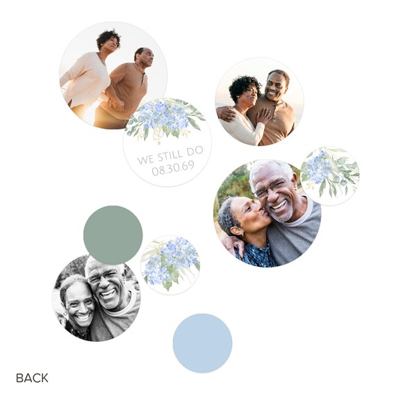 Bring floral charm to your Wedding Anniversary celebration with these Wrapped in Blue Hydrangea Jumbo Wedding Confetti featuring soft blue hydrangea illustrations, your photos, and romantic vibes. You can customize the background and font colors to match your party style.