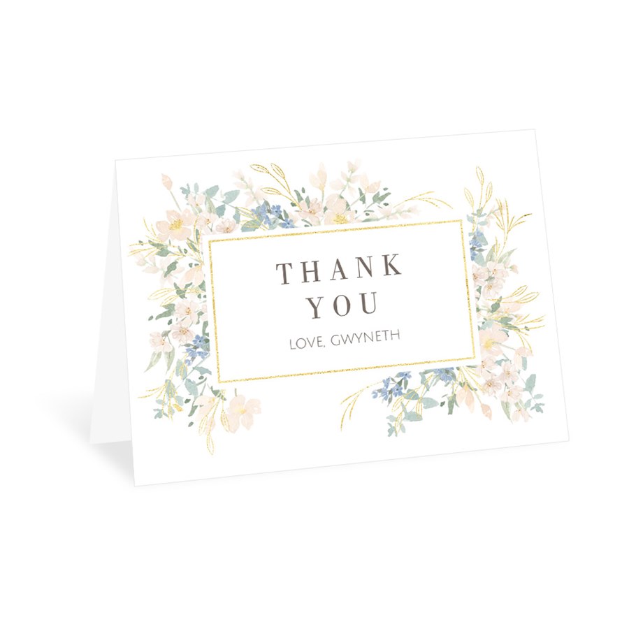 This Ethereal Garden Bridal Shower Thank you note is full of elegance and charm. The flowers and printed faux-gold foil envelop your custom text in graceful style. All the text on these thank you notes can be changed to the fonts and colors of your choice.