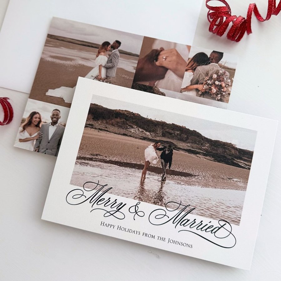 Your first Christmas as newlyweds deserves a card as special as your love story. The Merry & Married Christmas Card features your photo framed by festive script text. Adjust the background and text colors for a joyful, personal way to celebrate this milestone moment. Personalize this photo Christmas card, and create a custom look with endless layout, photo, design and text options.