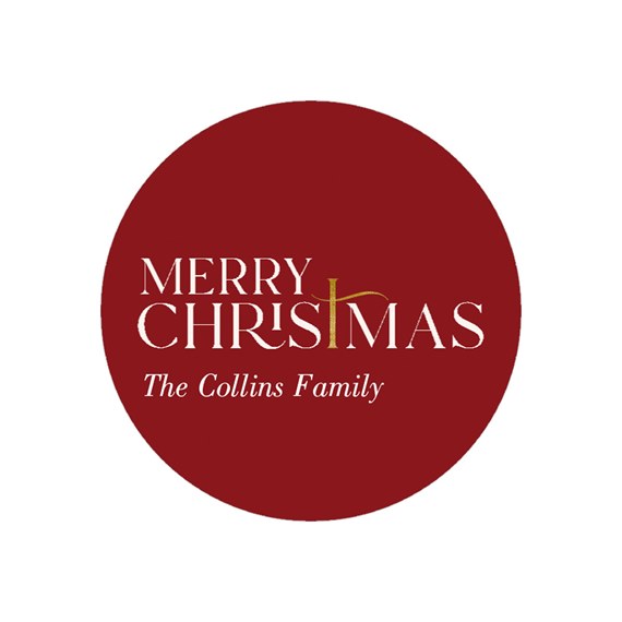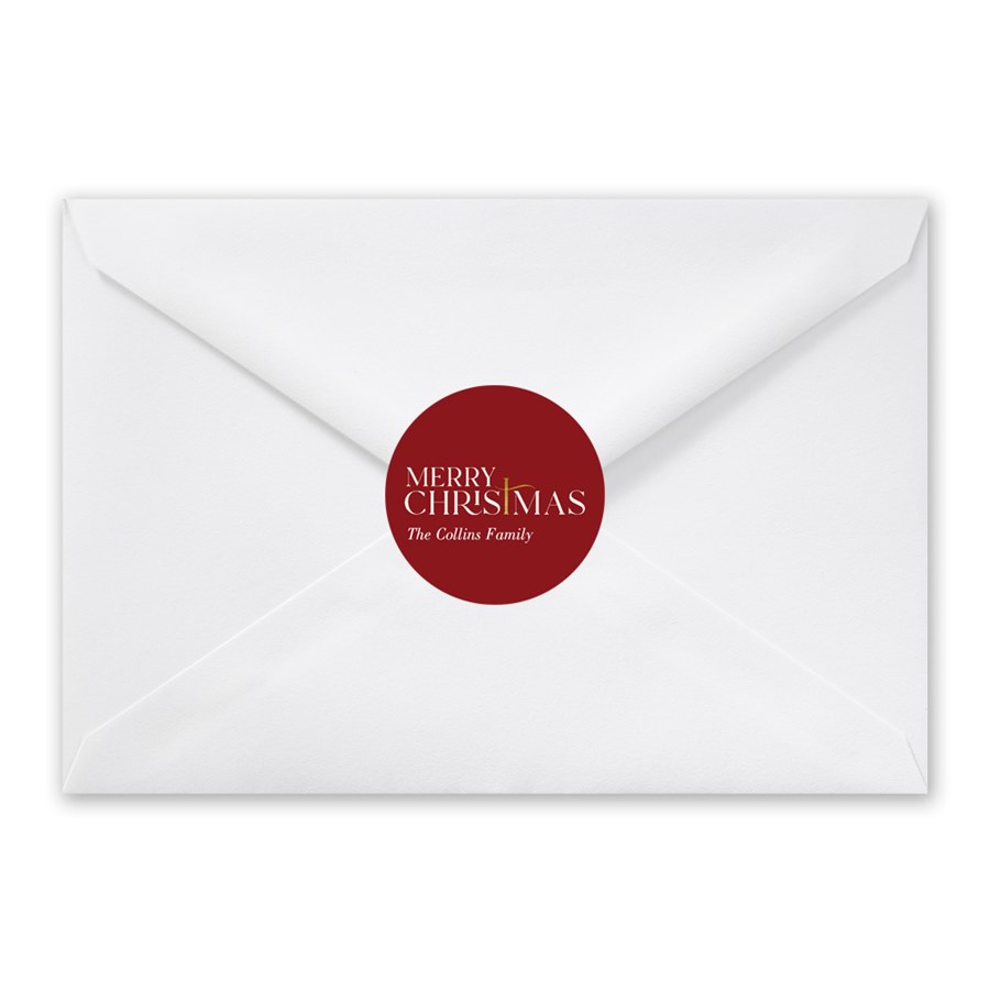 Seal your cards with a message of faith. This Christmas Cross envelope seal features “Merry Christmas” with a gold foil-style cross as the “T” – a simple, sacred accent for religious holiday greetings.