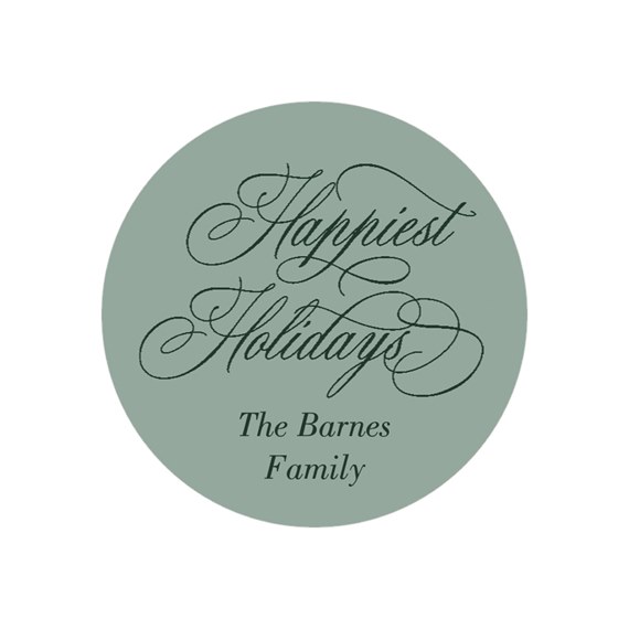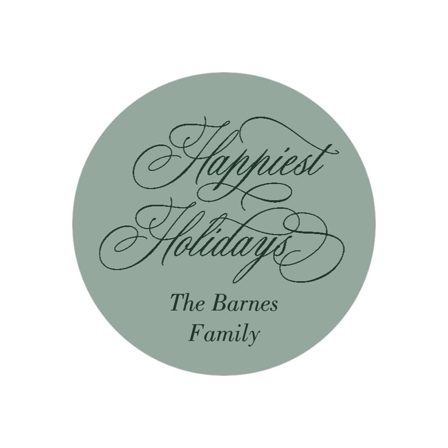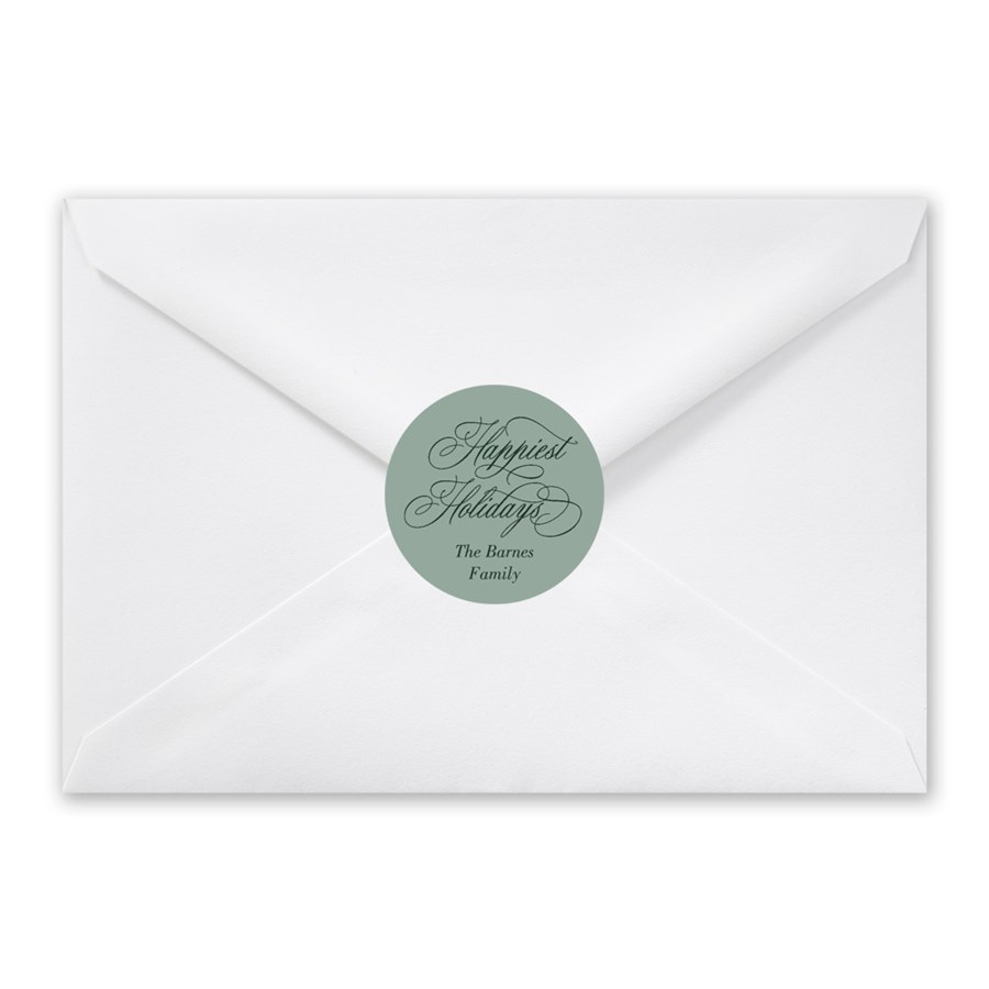 Sweet and sophisticated, this “Happiest Holidays” envelope seal features flowing script and your custom message. A perfect final touch for your seasonal stationery. You can update all the colors to create a look you love.