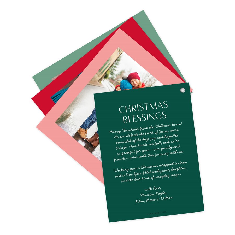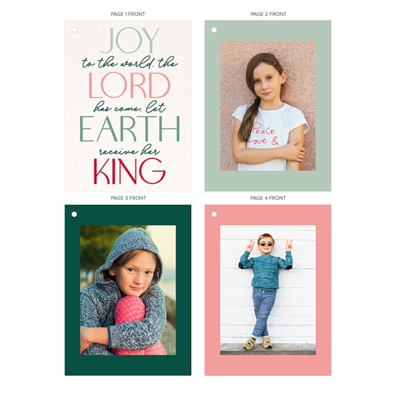 Celebrate the season with joyful reverence using the Let Earth Rejoice Christmas Card. This swatch-style card features the elegant message “Joy to the World, the Lord Has Come. Let Earth Receive Her King” on a textured white background. Inside the grommet-bound booklet, you’ll find space for six photos, personalized text, and colors of your choice.