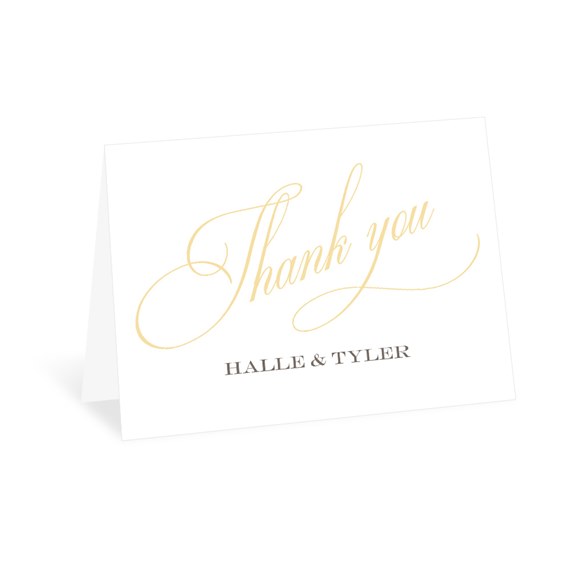This Golden Calligraphy wedding note card can be personalized in any colors you choose. An affordable choice, you can add your names, or any text you choose, to create a one-of-a-kind thank you card.