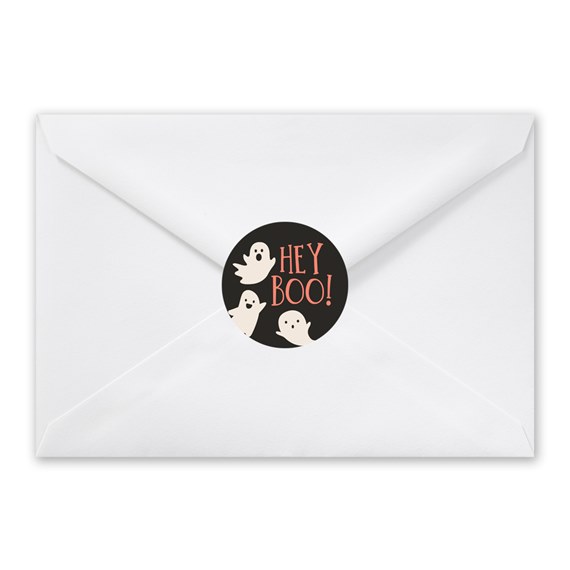 Add a playful finishing touch to your Halloween party invitations with these Hey Boo Envelope Seals. These round seals feature the phrase “Hey Boo!” in bold orange with white ghosts on a black background. Perfect for sealing envelopes or decorating party favors, these ghost-themed stickers bring a fun and festive vibe to your spooky celebrations.