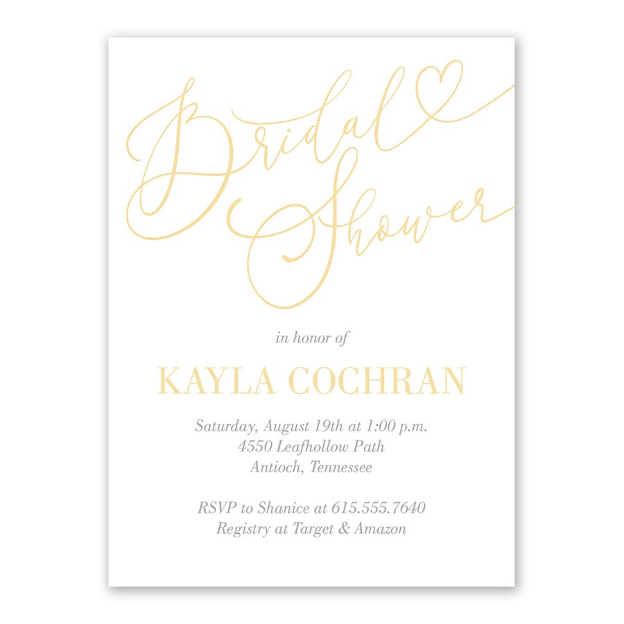 This Sweet Calligraphy bridal shower invitation is affordable and totally customizable. Update all the colors, then personalize the invitation wording to fit your style.
