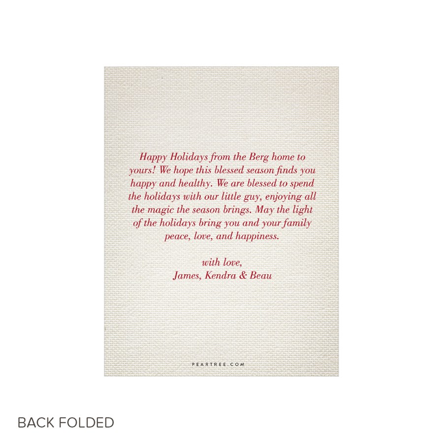 The Love and Hope Christmas card is a beautiful way to share your holiday spirit. With a trifold layout, it opens to reveal 2, main photo spots alongside the heartfelt message, “May this Season fill your Home with Love, Your heart with Hope & Our World with Peace.” Elegant winter greenery and shimmering digital gold accents make the artwork timeless. The back features 8 additional photos and room to share your family's message. This photo Christmas card is perfect for families who want to combine personal memories with a message of peace and love.
