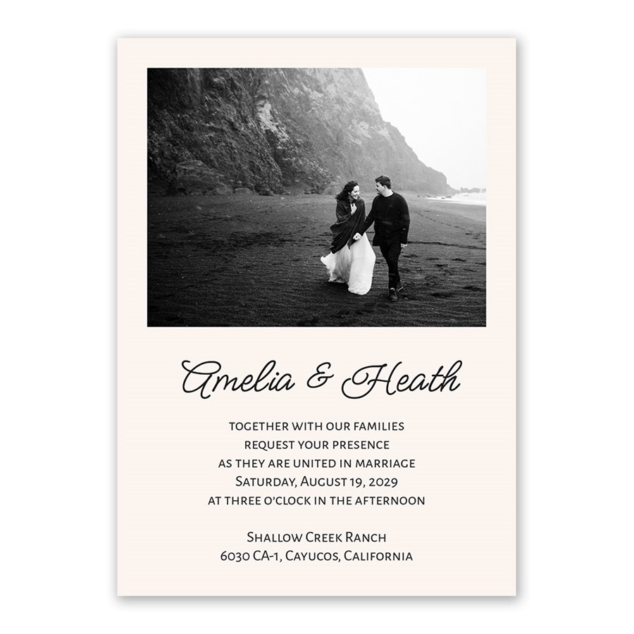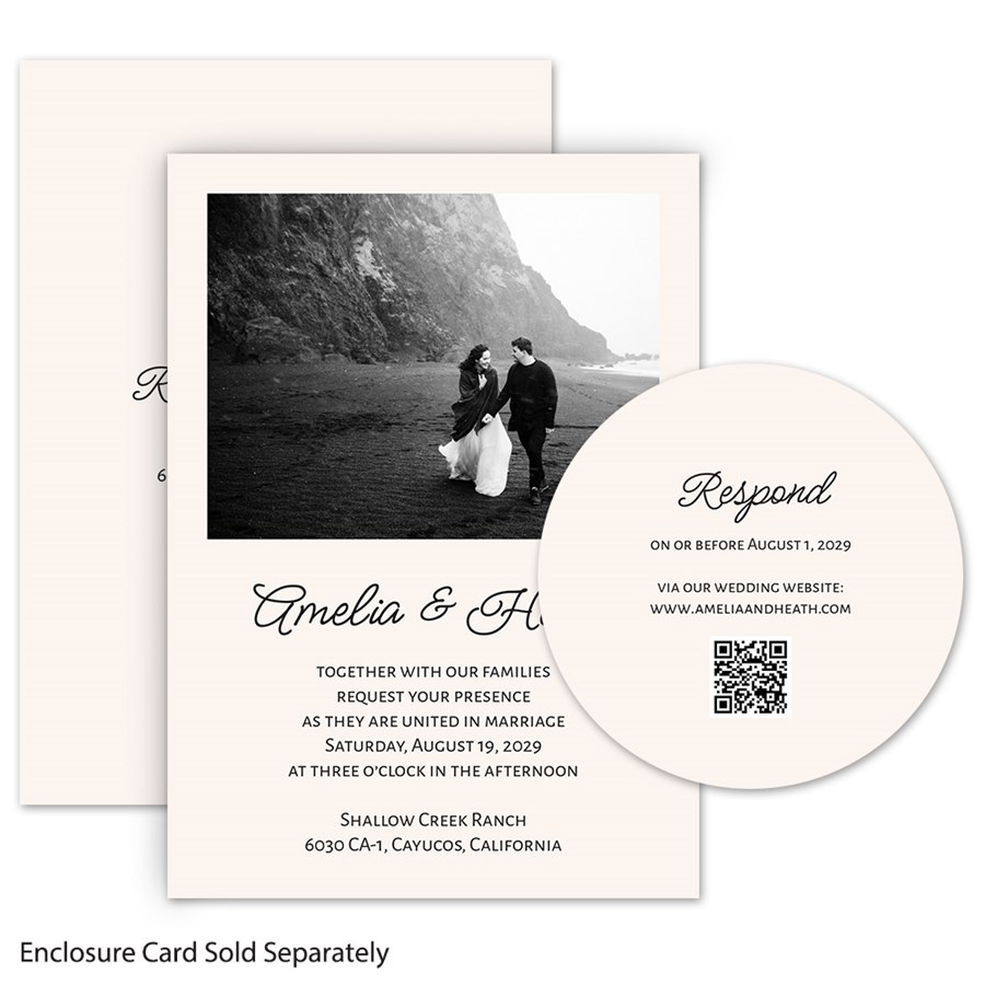 The Timeless Photo wedding invitation is a sleek photo-forward design that highlights your love story with customizable fonts, colors, and background options. This two-sided card includes flexible back templates so you can share all the important details with ease. Elegant yet modern, it’s a perfect choice for couples who want their wedding stationery to feel both stylish and personal.