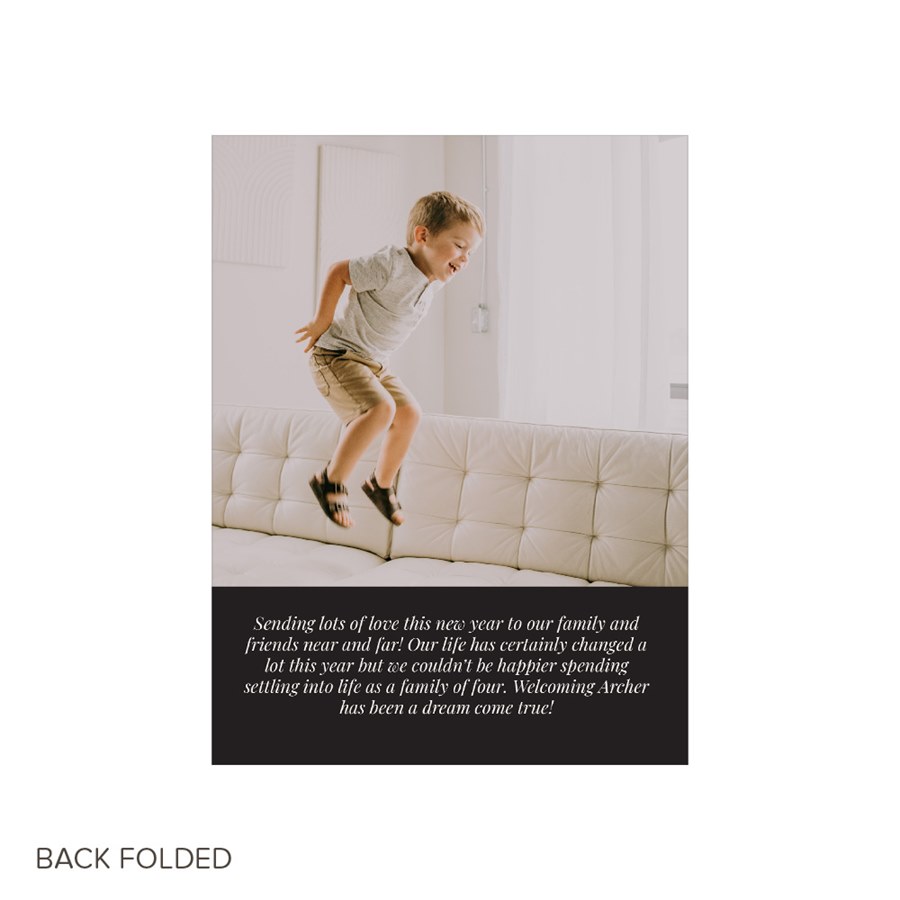 The A Happy Year New Year Card is a trifold design that showcases three photos on the front with the message “happy 2026” in your preferred color. Move the wording around until the layout fits your photos just the way you like it. On the back, choose from multiple templates to highlight more favorite moments. This folded New Year card offers a modern and photo-packed way to celebrate everything your family accomplished in 2025.