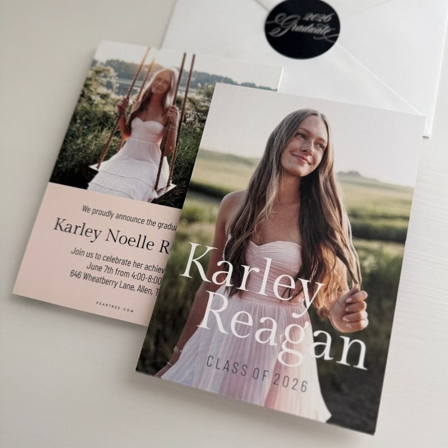The clean, full-photo layout of these Moving On Graduation Announcements puts your grad’s picture and name front and center. You can update the color and placement of the text to create a perfectly balanced look. The back features customizable templates for extra messages or photos. These graduation announcements are simple, striking, and full of meaning.