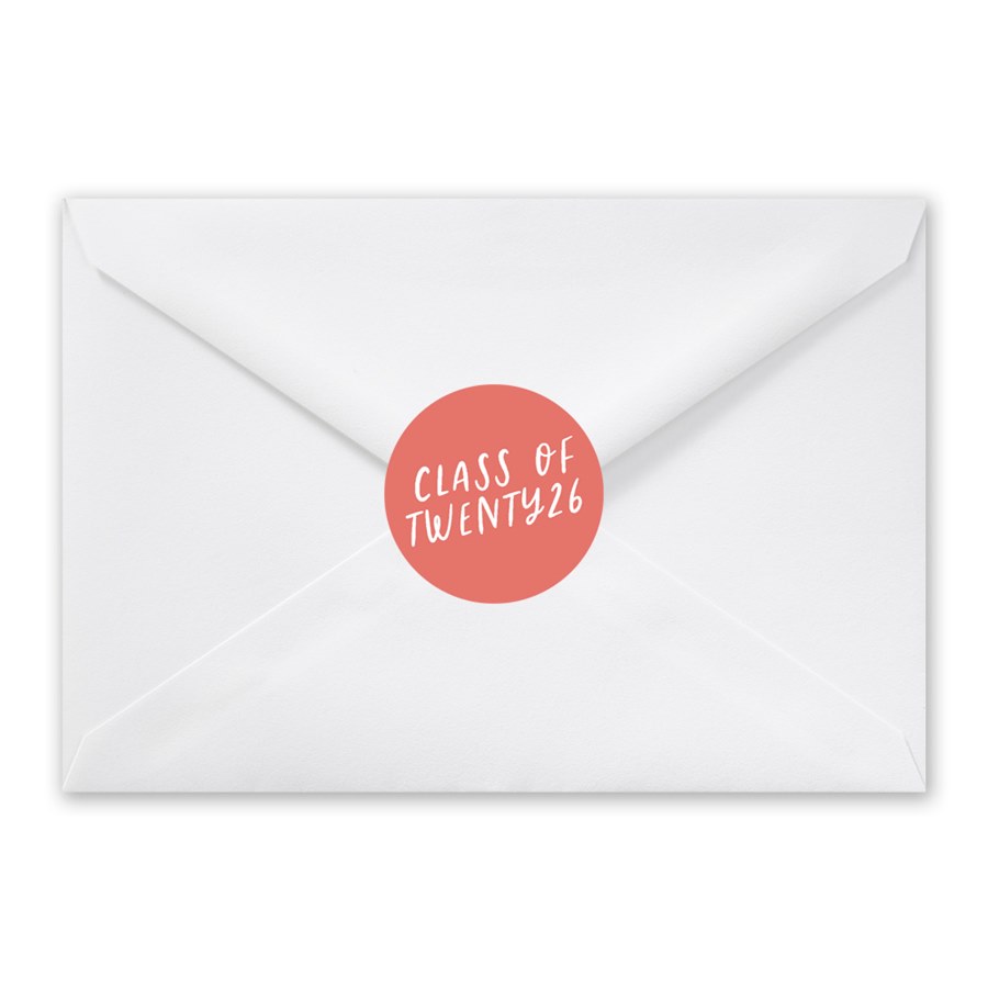 Add a fun finishing touch to your mailings with the Lettered Envelope Seals featuring a playful “Class of Twenty26” design. These round sticker seals let you update both the wording color and the background so they coordinate with any graduation invitation style. Their simple, modern look instantly elevates envelopes. A great match for anyone wanting an easy, polished seal for grad announcements.