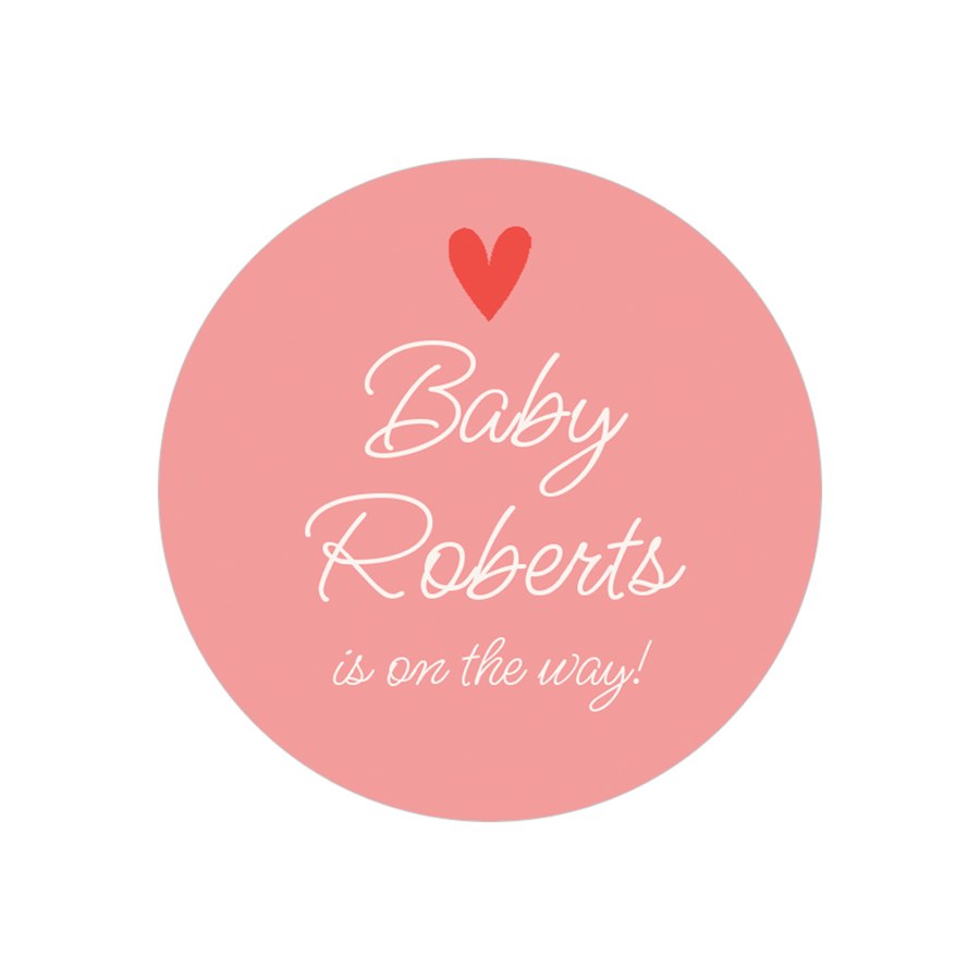 A cheerful heart artwork brings personality to the On the Way envelope seals, paired with customizable colors and fonts. Tailor the background and text to match your baby shower theme. These round stickers work beautifully on invitations, envelopes, and favors. A warm, simple finishing detail for your baby stationery.