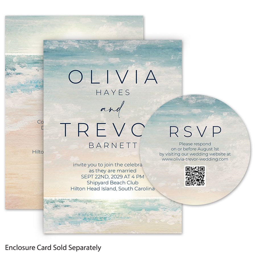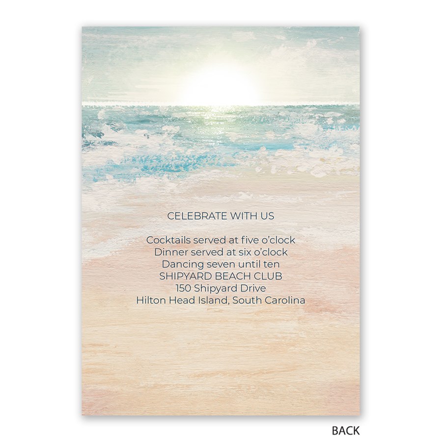 The Sunset Horizon Wedding Invitation beautifully captures the serenity of the ocean and sky. With its dreamy beach scene and customizable wording, this affordable invitation is ideal for coastal or destination weddings. The two-sided design gives you flexibility for additional wedding details on the back. It’s a stunning choice for couples planning a seaside celebration.