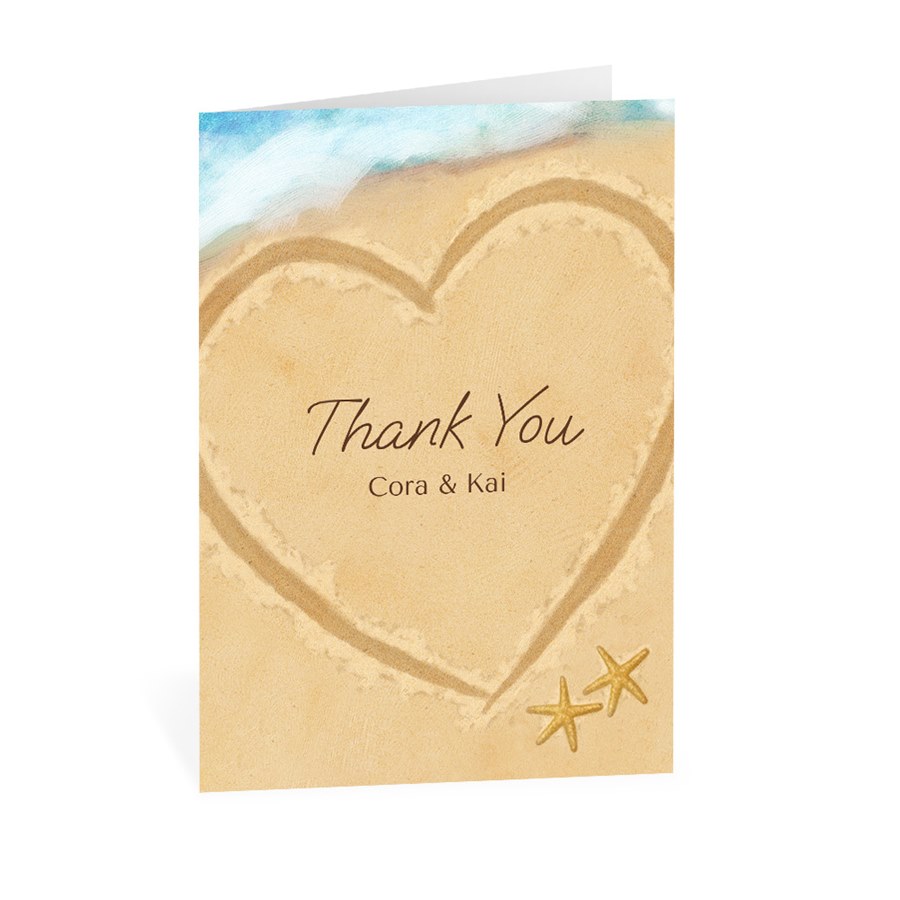 Say thank you in custom style with this Written in the Sand, beach themed wedding thank you card. You can update the text to make this totally custom!