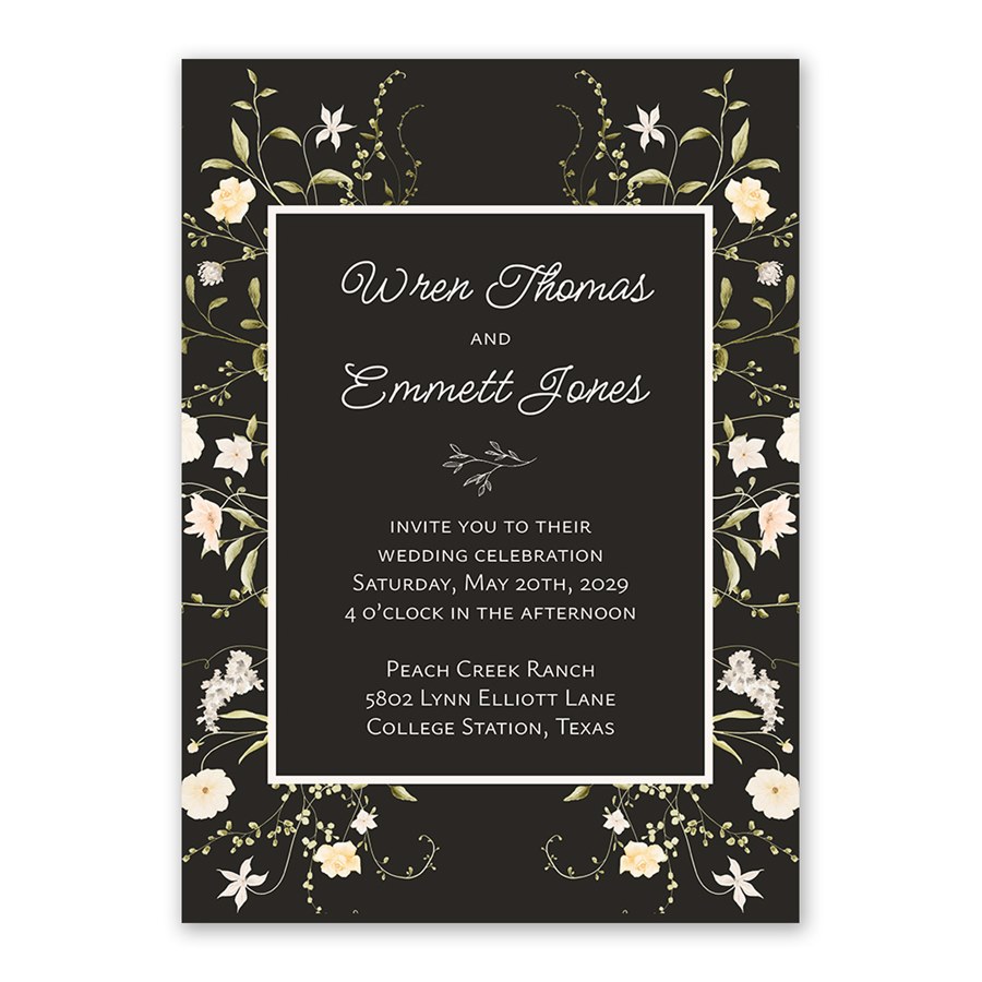 Romantic and timeless, the Wildflower Border Wedding Invitation features white wildflowers and greenery surrounding your wedding details with a framed border. Customize the background, border, and text colors to match your wildflower wedding theme. Printed on both sides, this design beautifully combines nature-inspired artwork with modern personalization. Perfect for rustic or garden weddings, this floral wedding invitation is pure charm.