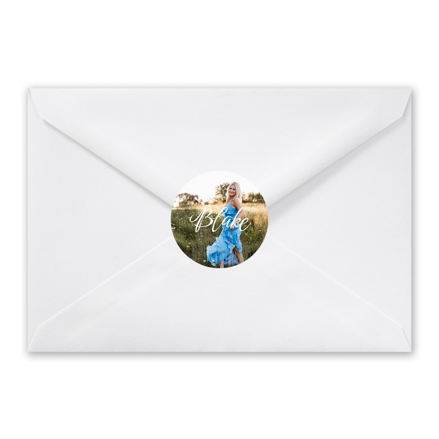 Personalize your envelopes with a photo-forward sticker design found in these Scripted Grad Envelope Seals. Custom text is printed directly over the photo in your choice of font and color. The round format is easy to apply and instantly elevates your stationery. These graduation envelope seals tie your entire grad suite together effortlessly.