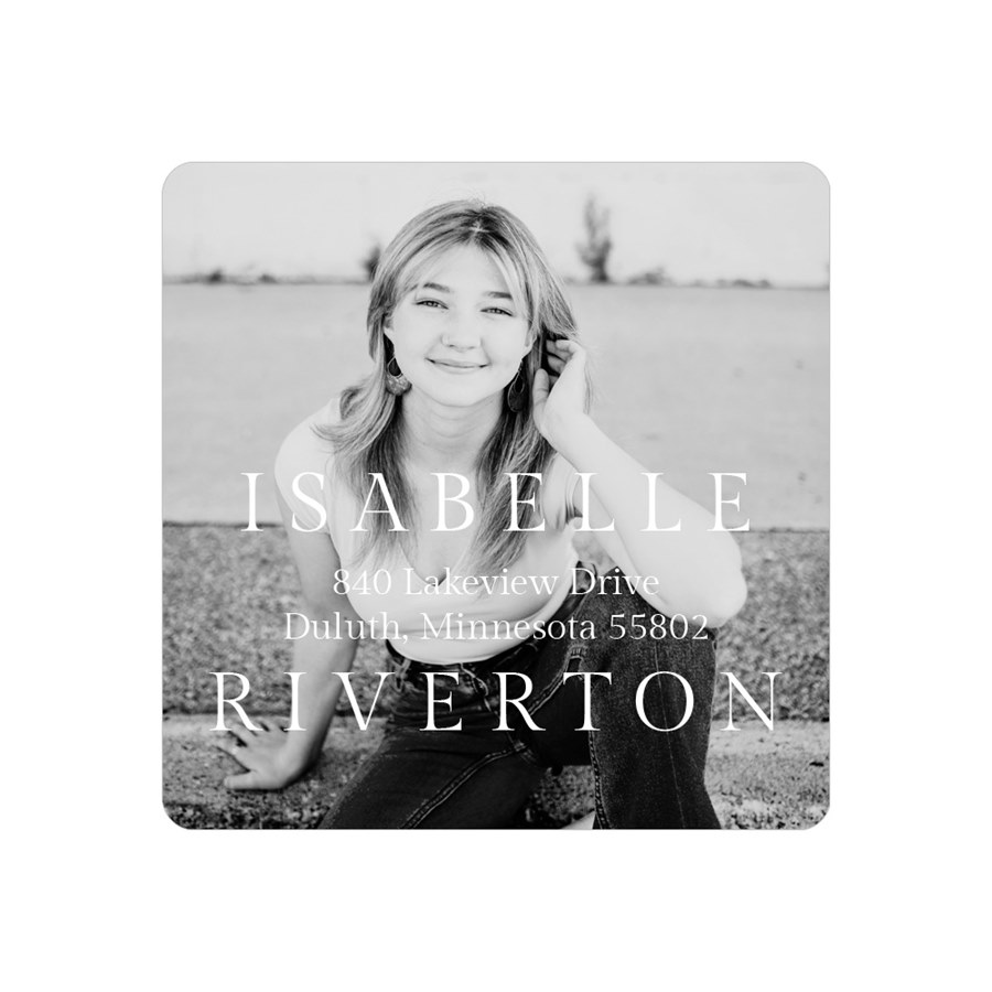 Keep your graduation mail clean and modern with a simple photo layout featured in The Minimalist Address Labels. A full photo is paired with your name and return address in customizable fonts and colors. The square shape complements contemporary stationery styles. These graduation address labels are perfect for a sleek, understated look.