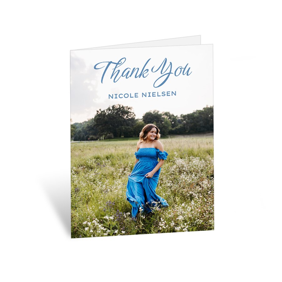 Focus on what matters most with the Achieve Thank You Card, a folded design that highlights a full photo with fully customizable text, color, and placement. Add a printed message inside or leave it blank for handwritten notes. This folded thank you card offers a timeless way to show appreciation.