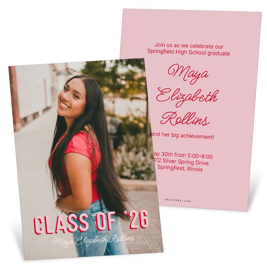 Make your grad’s big moment pop with the Color Coded Graduation Party Invitations featuring bold 3D “Class of ’26” text over a full photo. This flat, two-sided design lets you customize colors, placement, and text for a vibrant, modern look. The reverse side includes template options for party information. It’s a fun, colorful way to invite guests to celebrate your graduate and can also double as your graduation announcement to send to your family and friends.