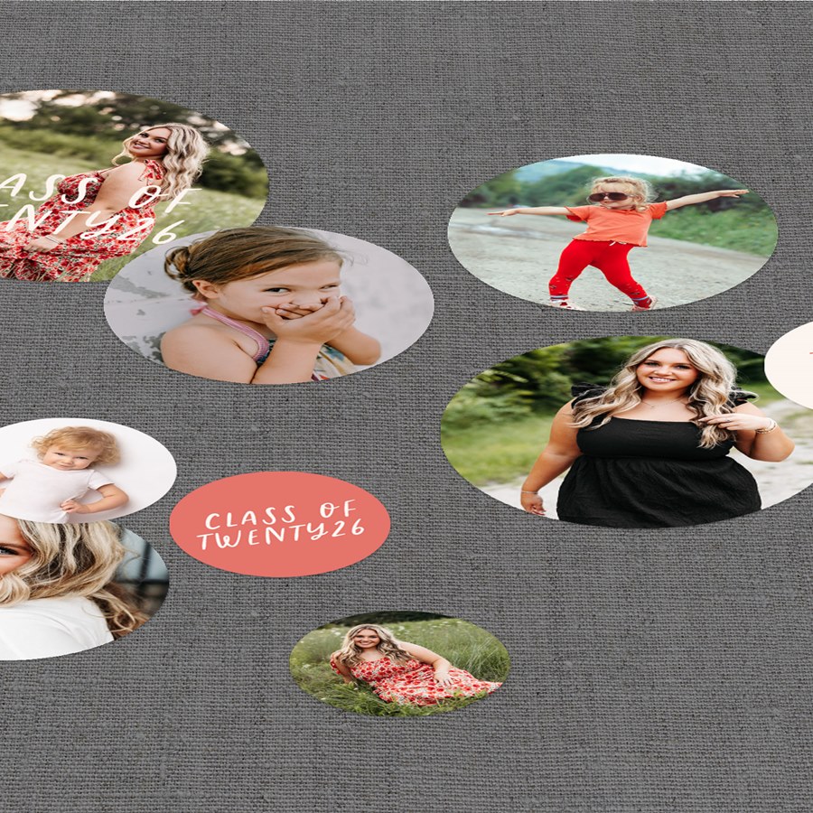 Celebrate in style with Lettered Jumbo Graduation Confetti, oversized photo circles designed to stand out. These circle pieces feature growing-up snapshots, graduation year artwork, and custom text for a personalized touch. Double-sided photo options add extra visual interest and make your graduation table decor part of the celebration story.