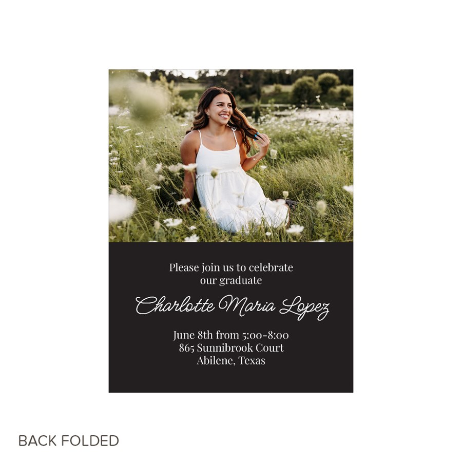 Share your graduate’s big milestone with this Rising Grad Graduation Announcements. This trifold graduation announcement features three photos with the word grad printed on the left panel. Customize the colors, add their name, and personalize the text. The folded layout gives you plenty of space to share graduation details or party information. A stylish photo announcement with a folded design that can double as your graudation party invitation.