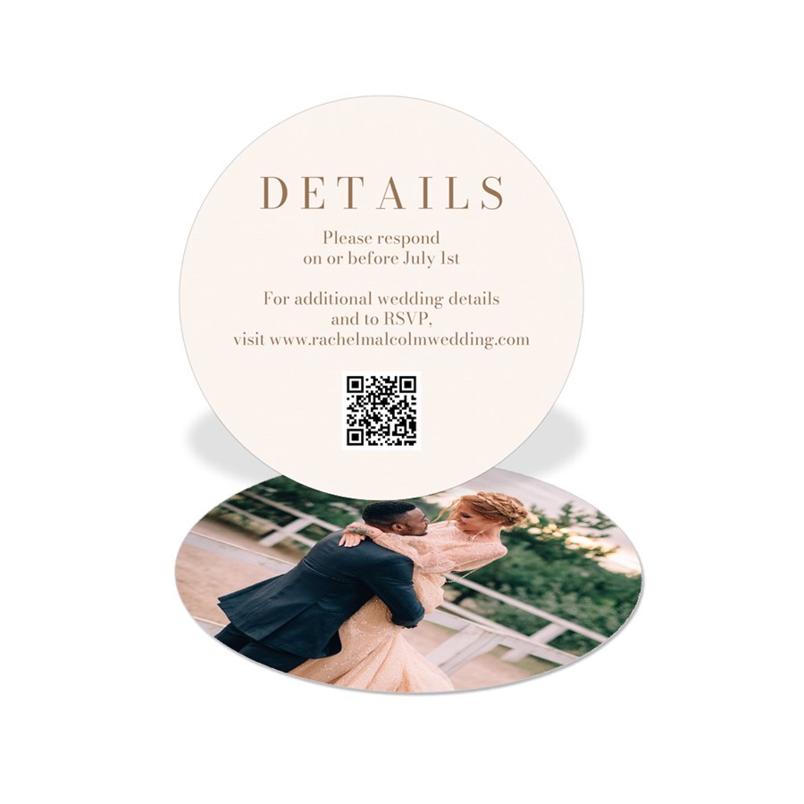 Add stylish coordination to your stationery with this Simple Text Wedding Insert Card, a modern round wedding insert card designed to complement your photo wedding invitations. The clean layout keeps the focus on your information while allowing full customization of background colors, fonts, and wording. Include a QR code so guests can quickly RSVP online or access your wedding website. A full photo on the back adds a personal and meaningful finishing touch. It’s a sleek photo insert card with a round circle design and QR code RSVP option.