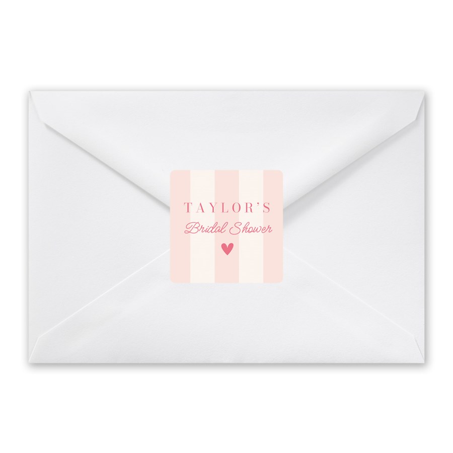 Tie your stationery suite together with the Sweetest Stripes Envelope Seals, a square envelope seal featuring stripes in your chosen color, a small heart accent, and space for custom text. With stripes, sticker style, and cute heart detail, these seals add a cohesive and charming finish.