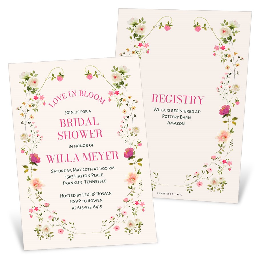 Invite guests to a blooming celebration with the Love In Bloom Bridal Shower Invitations, a flat, two-sided bridal shower invitation featuring soft garden florals and the charming phrase “Love in Bloom” in a graceful curve. You can update the color of the “Love in Bloom” artwork and the background to perfectly match your shower theme. Personalize the front with all your bridal shower details, then use the back for RSVP instructions, registry information, and any additional notes, keeping everything beautifully coordinated in one elegant design.