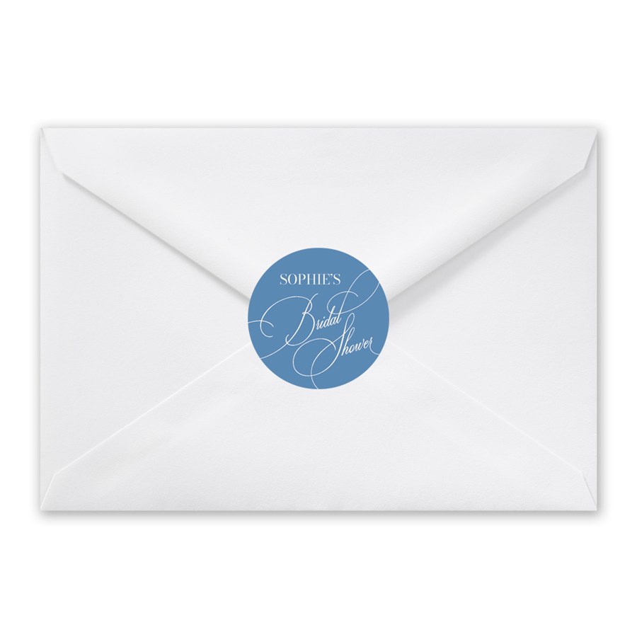 Complete your suite with the Calligraphy Scrawl Envelope Seals, a round envelope seal featuring “Bridal Shower” in beautiful script lettering. You can update the color of the artwork and the background colors to match your theme perfectly. The flowing script and clean layout create a refined finishing touch, tying your stationery together in an elegant and polished way.