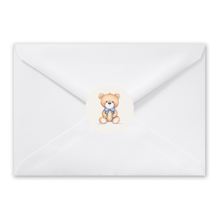 Add adorable charm with the Little Cub Blue Envelope Seals, a round envelope seal featuring a brown teddy bear with a blue ribbon. The sweet illustration creates a playful, cozy feel that’s perfect for celebrating a little one.