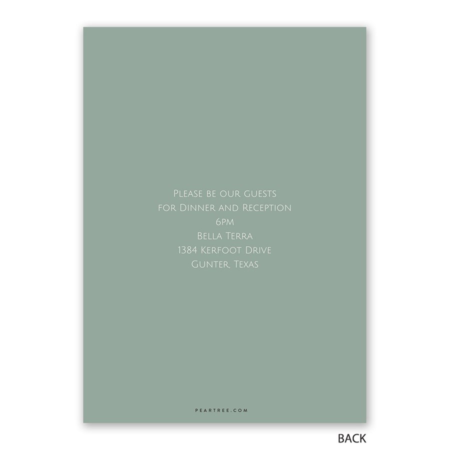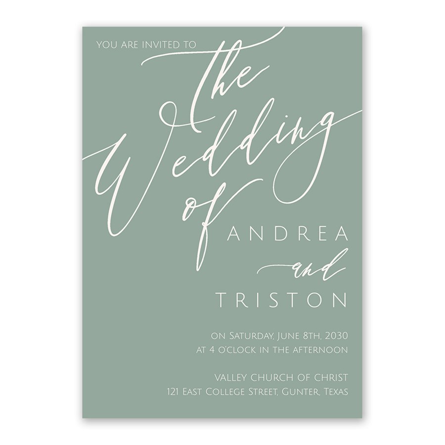 A modern romantic style shines through with these Chic Script Wedding Invitations, featuring “The Wedding of” in flowing script paired with your custom text. You can update the artwork, wording and background colors to match your wedding vision. The back offers space for additional details while maintaining a clean layout. Customize fonts and colors for a completely personalized look. Ideal for classic wedding invitations with a fresh, customizable feel.
