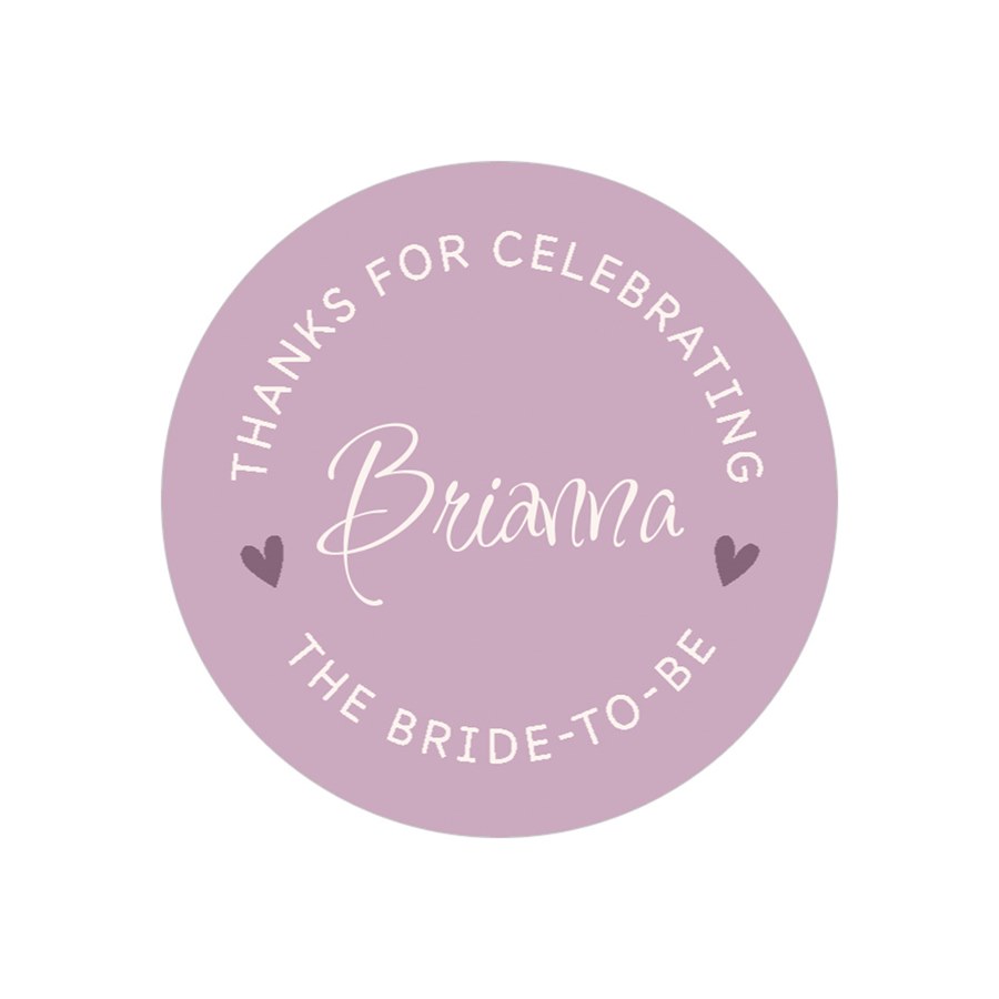Playful and thoughtful, the Sweet Celebration Bridal Shower Sticker is a charming sticker favor with curved text and heart accents framing your custom wording. The phrase "Thanks for Celebrating the Bride-to-Be" is printed around the sticker. Add the bride’s name and update all the colors to create a personalized look. This curved design adds movement and interest to your favors. A fun way to thank guests for celebrating.