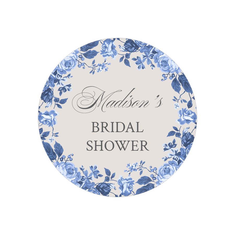 Coordinate your stationery beautifully with the Vintage Blue Floral Envelope Seals, a round seal featuring a classic blue floral border and custom text. Personalize the fonts, text colors, and background color for a cohesive design. This envelope seal adds a refined, romantic touch to your mail. A lovely finishing detail for any suite.