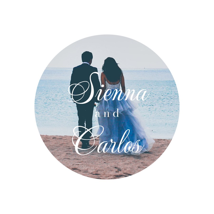 Add a standout finishing touch to your celebration with the Full Image Wedding Sticker, designed to showcase your favorite full-bleed photo with custom text layered on top. Add your names or any wording you’d like, then choose your preferred font and color to match your style. Perfect for sealing favor bags, decorating treat boxes, or adding a personalized detail throughout your wedding or bridal shower, this design creates a bold, memorable look for every piece of your event.