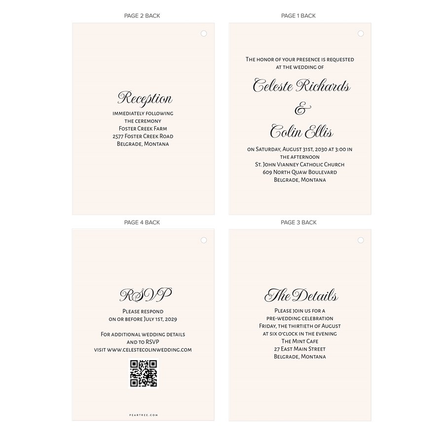 Created to capture your love story beautifully, the Simply in Love Wedding Invitations offer a timeless take on a photo swatch book design. This grommet-bound booklet opens to four thoughtfully designed pages, starting with a full photo and your custom wording on the cover. Inside pages highlight your favorite photos alongside wedding details, RSVP information, and reception plans in a clean, organized layout. Customize fonts, colors, and backgrounds to reflect your style and create a cohesive look from start to finish. This photo grommet booklet invitation is equal parts elegant, personal, and effortlessly polished.