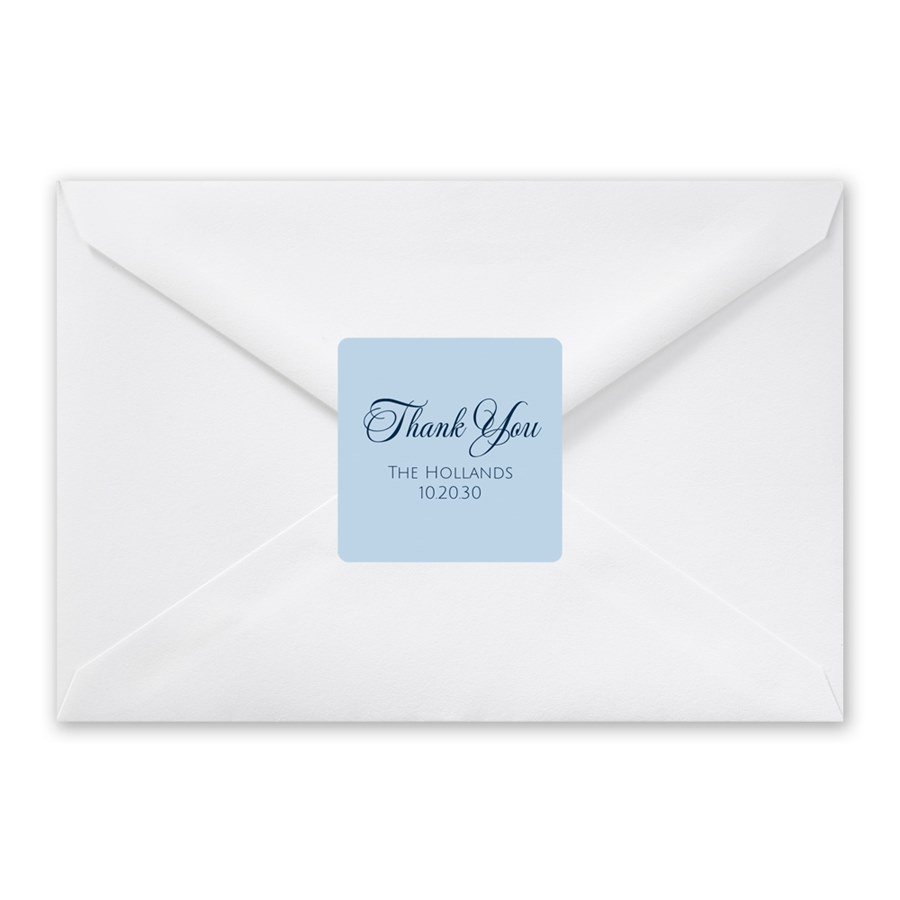 Designed for effortless coordination, the With Thanks envelope seals highlight your custom wording in a clean and modern layout. Choose your fonts, colors, and background to create a look that matches your invitations perfectly. The square format keeps things classic while allowing your personalization to stand out. These custom envelope seals are a timeless addition to any wedding suite.