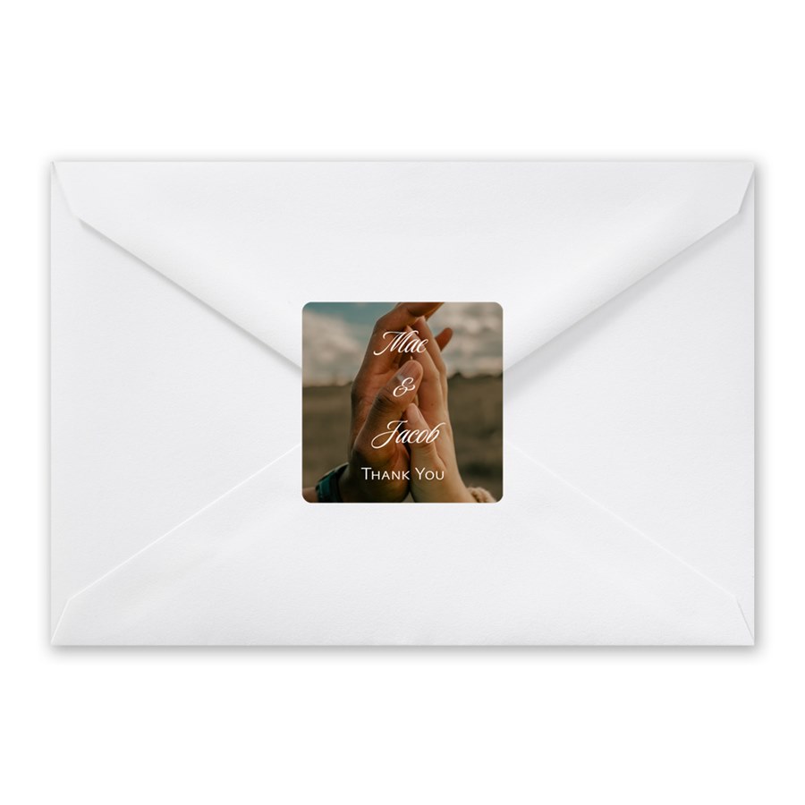 Create a cohesive and personal look with the Together Forever envelope seals, featuring your full photo with custom text layered on top. Customize fonts and colors to match your invitations or overall theme. The square format keeps the design modern and clean. These photo envelope seals add a polished and memorable finishing touch.