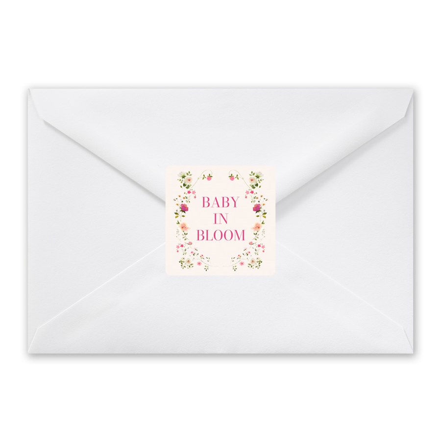 Complete your envelopes with the In Bloom Envelope Seals, featuring delicate pink flowers and greenery surrounding your custom text. This soft floral design adds a romantic and cohesive touch to your stationery. Perfect for tying your theme together from start to finish. Customize colors and fonts to suit your style.