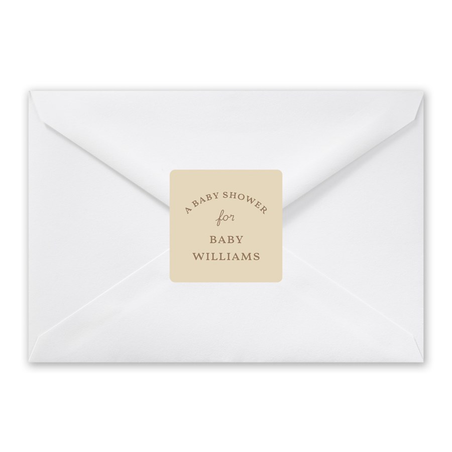 Complete your envelopes with the Simple Type Envelope Seals, designed with curved text and customizable wording. This clean and modern style adds a subtle finishing touch. Perfect for coordinating your baby shower stationery suite. Customize all colors to match your theme.