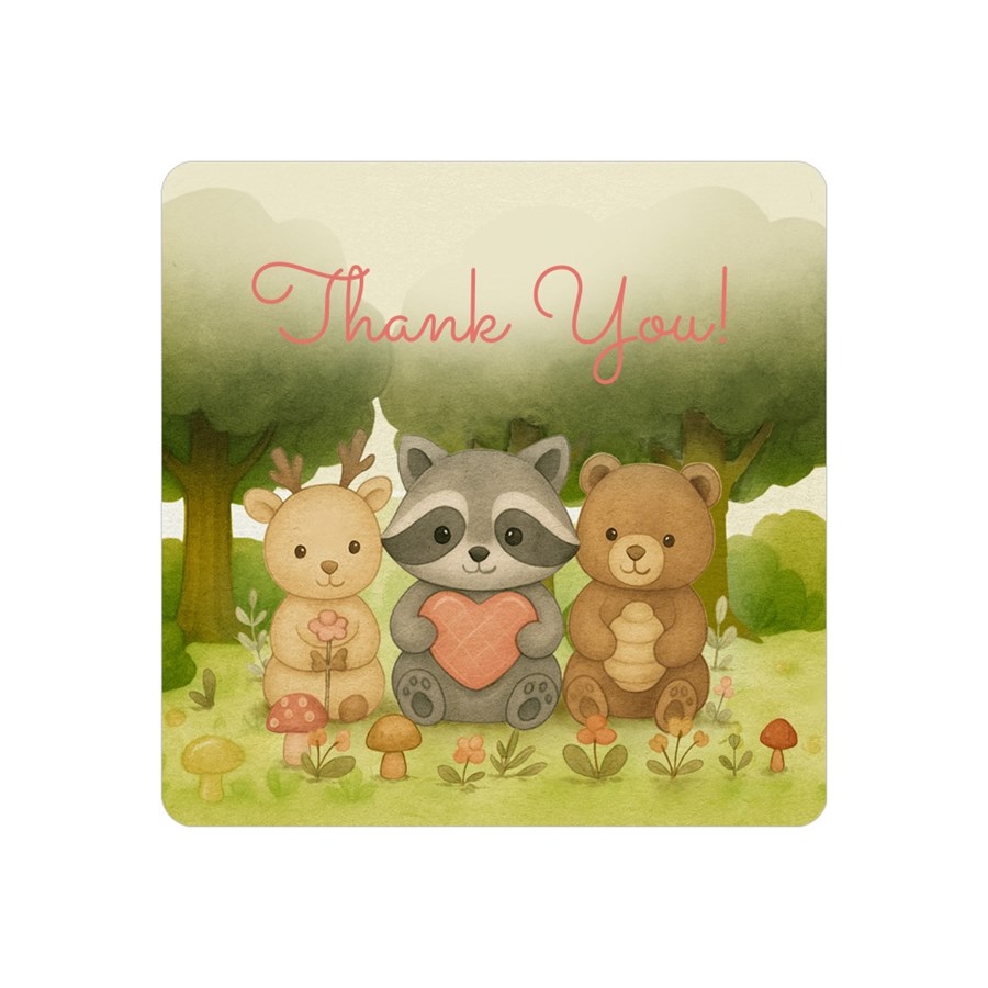 With its cozy forest scene, the Whimsical Woodland Baby Shower Sticker adds a storybook feel to your celebration, featuring a sweet deer, raccoon, and bear nestled among the trees. It’s a charming choice for favor bags or small details that deserve a little extra personality. Your custom text can be added to the top, with flexible font and color options to tie into your theme. It’s the kind of design that guests notice—and remember.